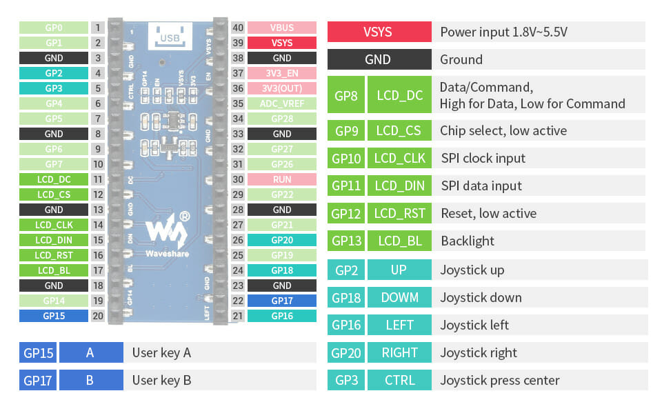 - Comes with development resources and manual (Raspberry Pi Pico C/C++ and MicroPython examples)